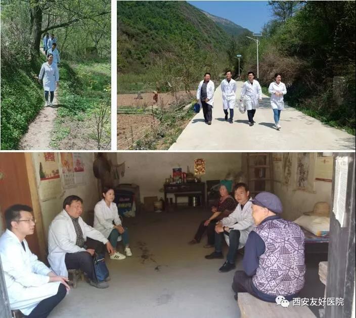 2019年4月18日,早上6时30分,西安雁塔友好医院健康扶贫医疗小分队在党支部书记雷浩的带领下,一行五人前往周至县王家河镇老庄子村,开展为期两天的健康扶贫工作,为村民免费看病送药,切切实实让村民足不出村就享受到优质的医疗服务。
